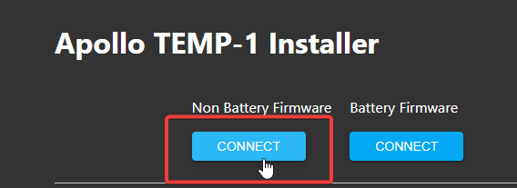 2. Navigate to our installer page and click connect under Battery Firmware Apollo TEMP-1 Installer.