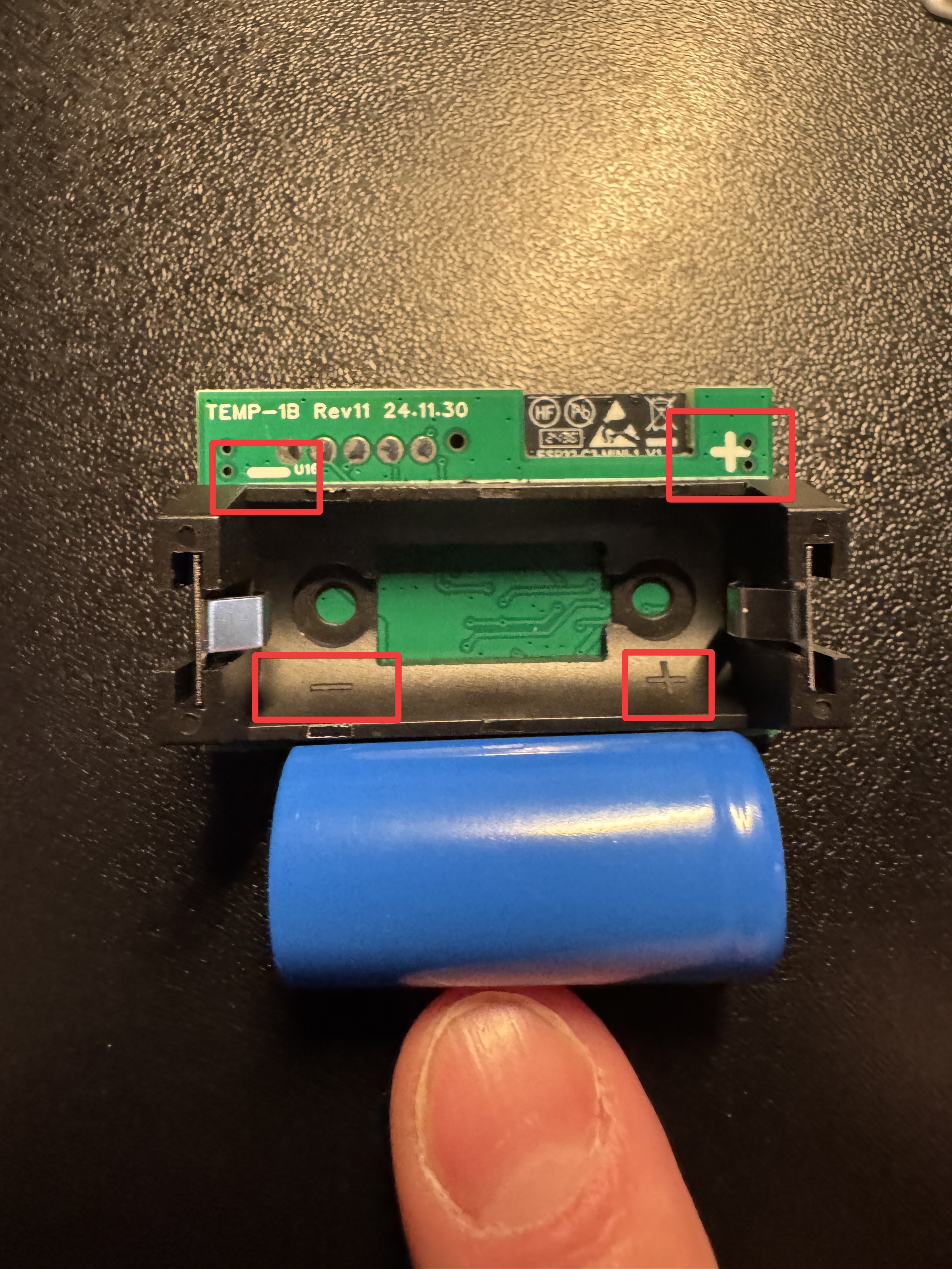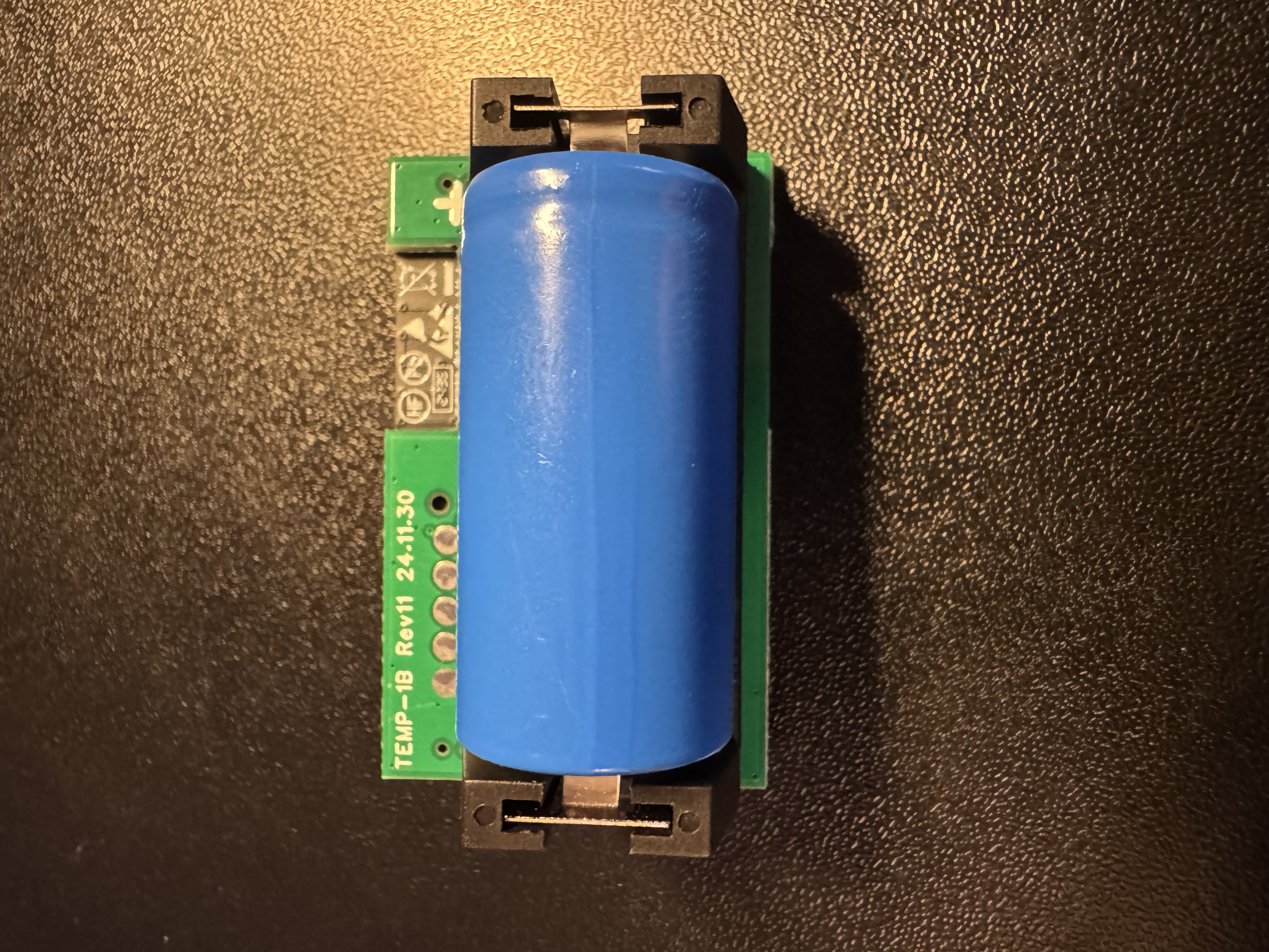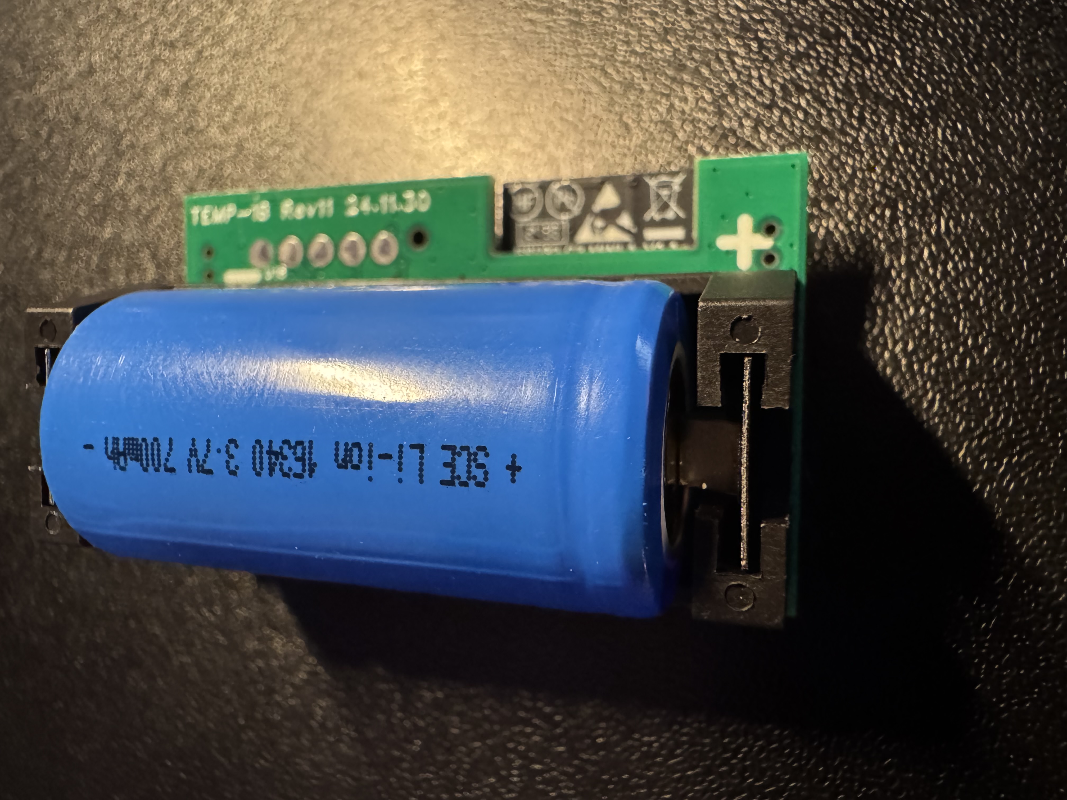 The TEMP-1B is a very neat sensor but it does NOT include a battery nor a charging circuit. You will have to buy your own rechargable RC-CR123A aka 16340 battery and also a separate 16340 charger such as a Nitecore 2 or 4bay model.