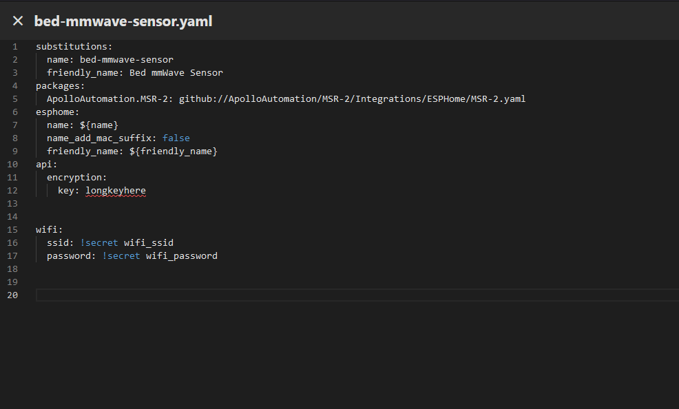 Step 2. Copy the code below and paste it to line 20 in your ESPHome yaml for this device.