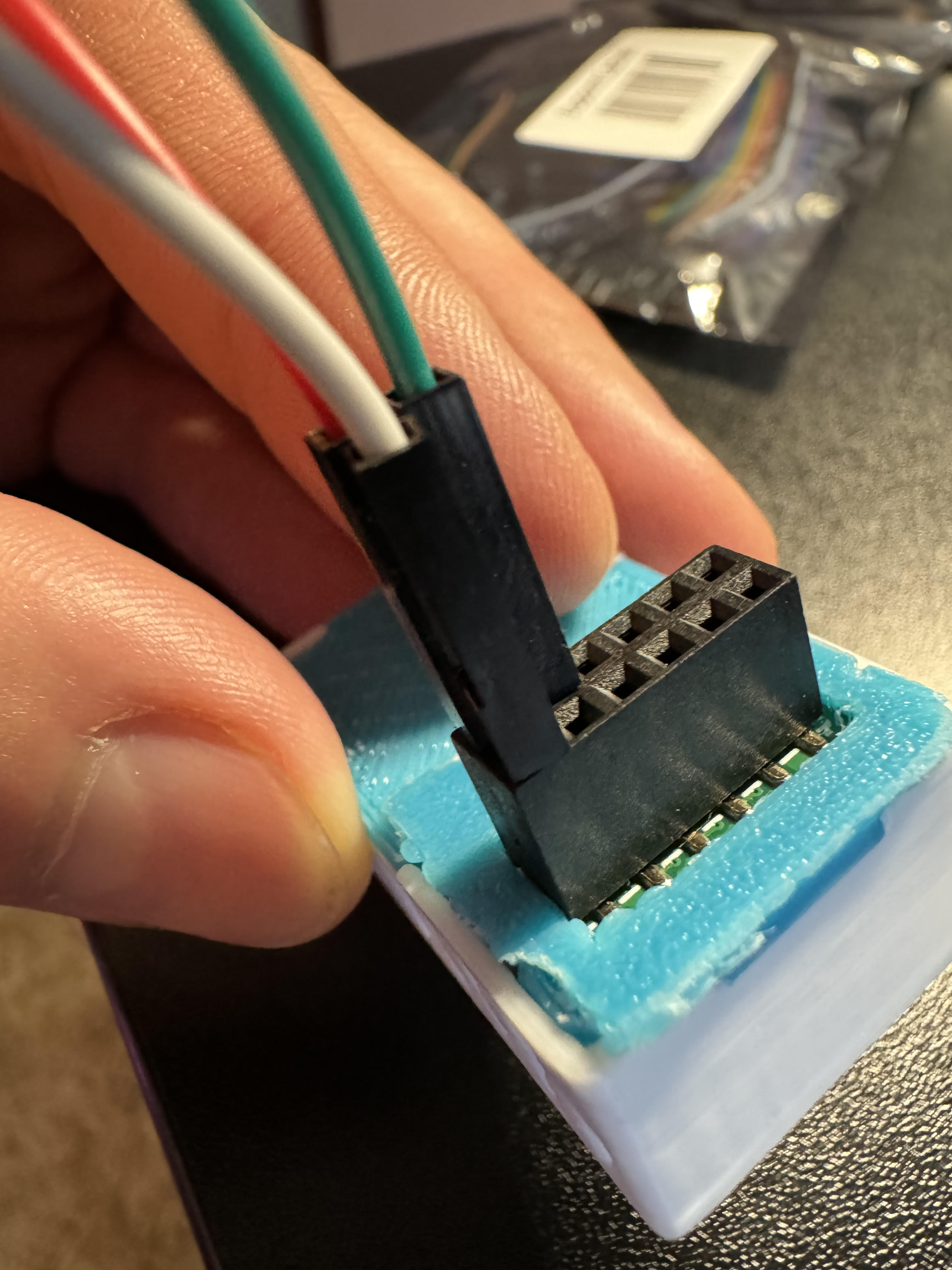 You can add a bit of hot glue to the Dupont wires to hold them together. DO NOT put hot glue into the GPIO Header's female pins that will ruin the addon. I am only suggesting that you can hot-glue the Dupont pins outer shell themselves together to stiffen them up.