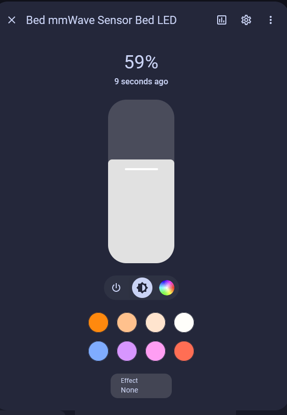 Step 5. Go into home assistant and confirm you now have a new light entity called Bed LED