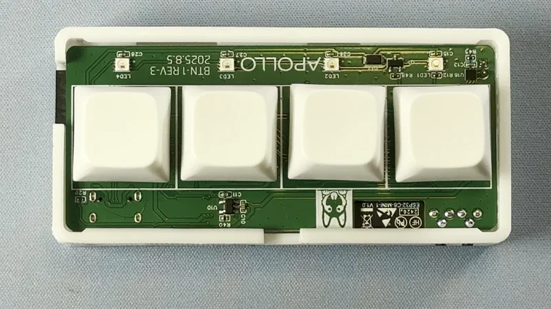 3. Gently lift the BTN-1 green PCB out of the device at an angle so the buttons clear the case easier.