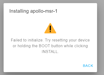 If you encounter the below error, please complete the Putting MSR-1 In Boot Mode Document and go back to step 3.