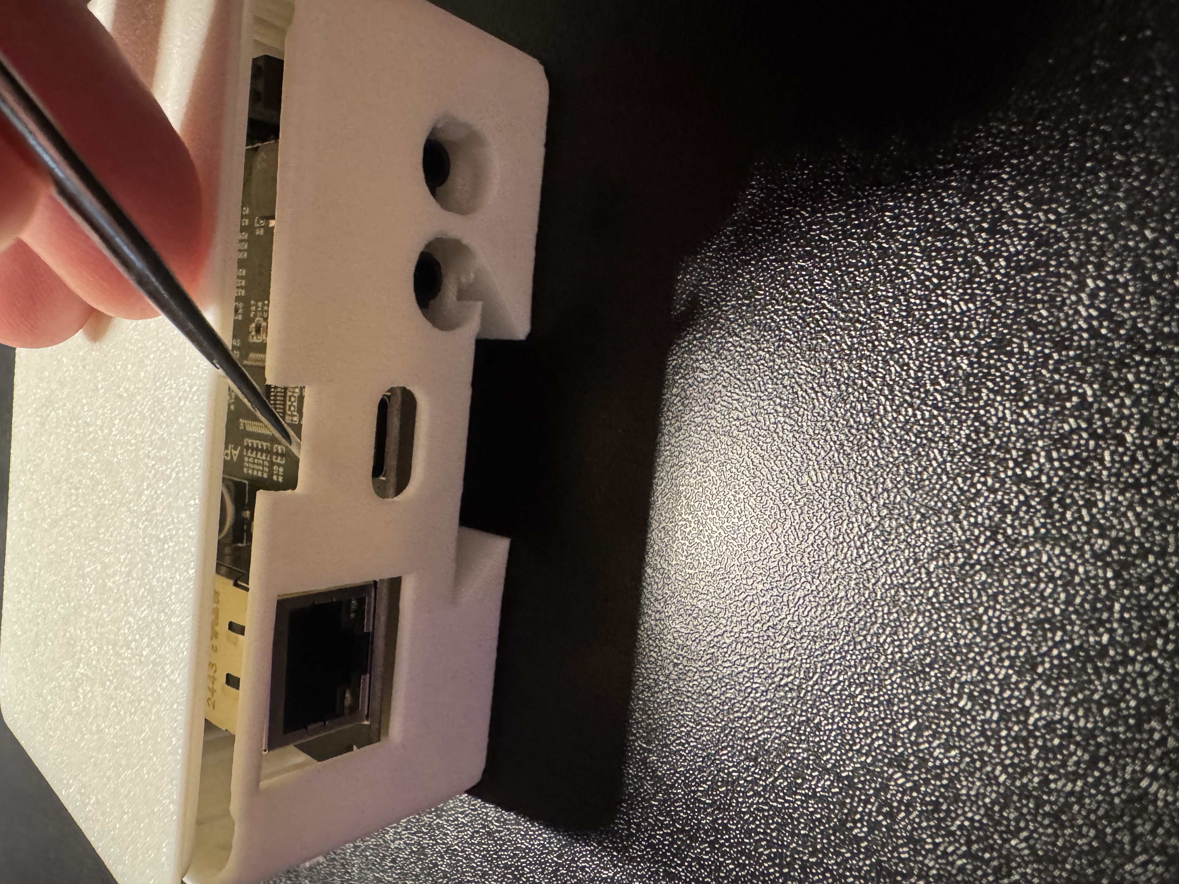 1. Position the TEMP Pro-1 so that the USB-C port is facing you. Remove the lid by gently prying up on the small slit by the top of the case.