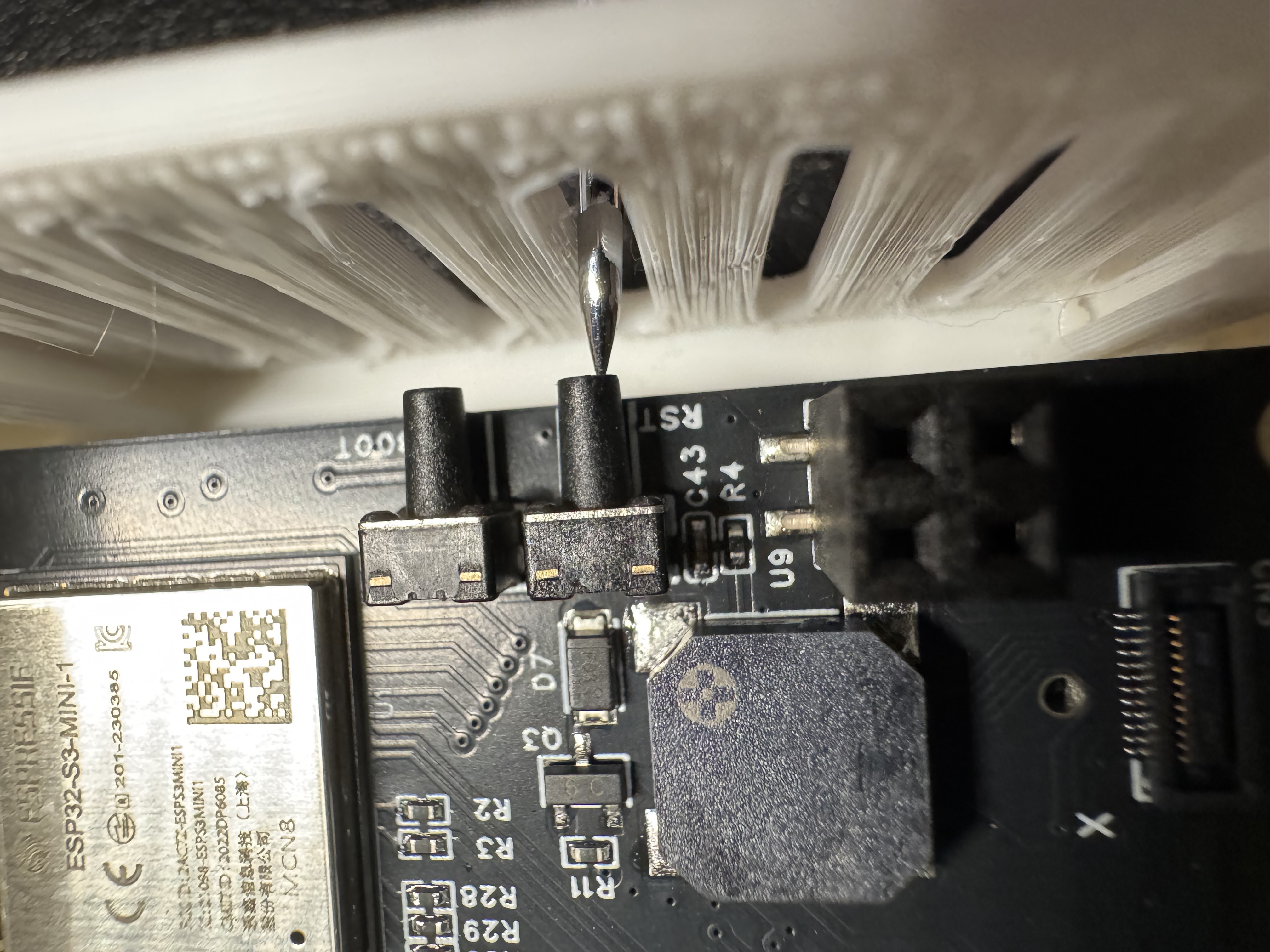 3. Push and hold the boot button. While still holding the button down, plug in a USB-C cable into the USB-C port of your TEMP Pro-1 then let go of the button.